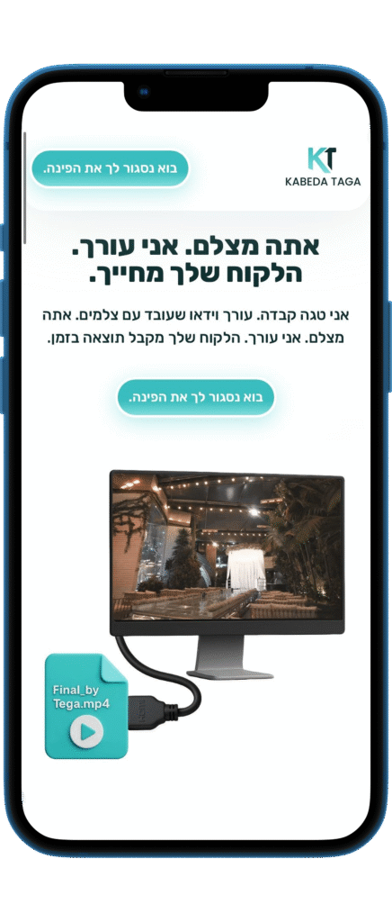עיצבתי ואפיינתי דף נחיתה ממוקד עבור טגה קבדה עורך וידאו מוכשר עם סגנון ייחודי ומקצועיות בלתי מתפשרת. המטרה הייתה לייצר דף חד, ברור, רגשי וממיר,  שמעביר תוך שניות את הסיפור של טגה, את הערך שהוא מציע, ומניע לפעולה.